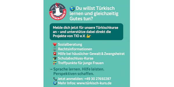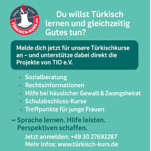 Mit dem Besuch unserer Türkischkurse unterstützen Sie gleichzeitig die wertvolle Arbeit von TIO e.V.